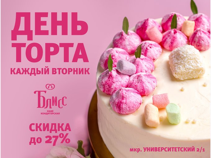 🎂 Каждый вторник — ДЕНЬ ТОРТА в Блисс!